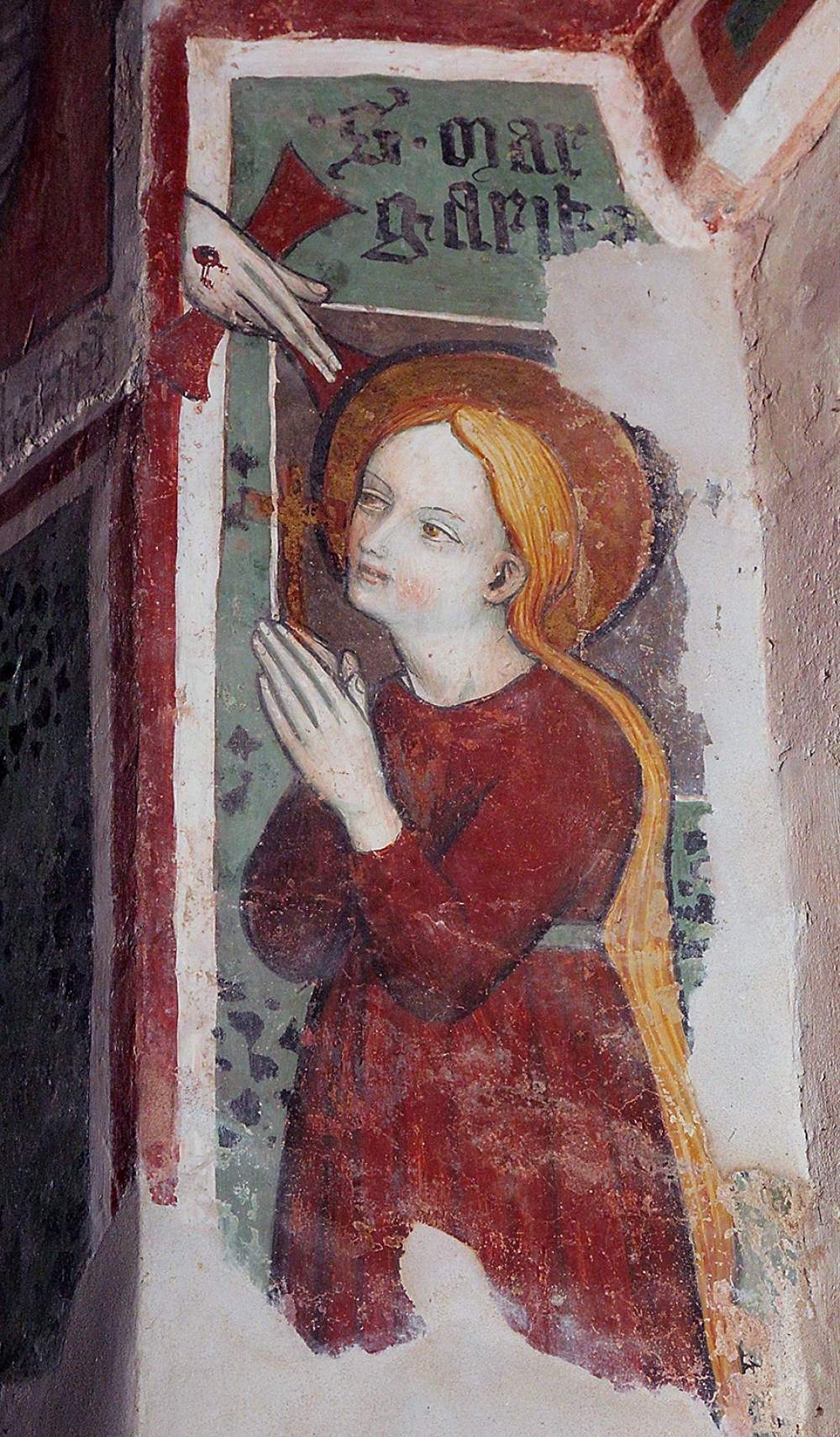 «Santa Margherita d’Antiochia» (1445 ca) di Duxaymo (particolare), Villafranca Piemonte, Santa Maria di Missione