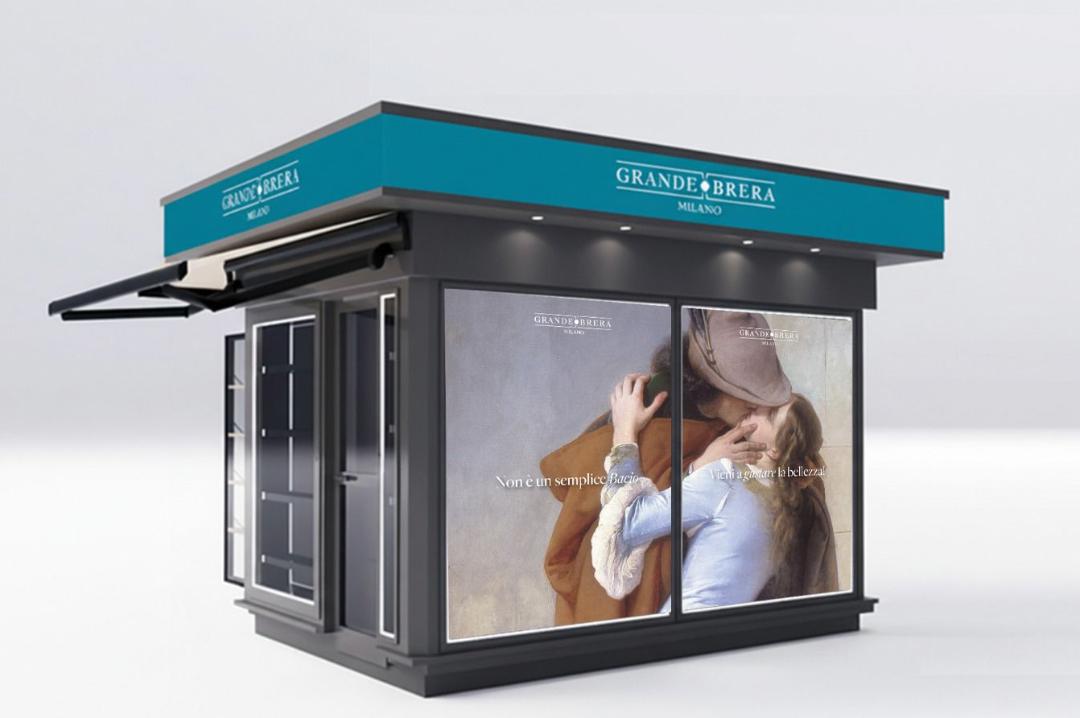 Il dipinto di Hayez trasforma l’edicola di fronte a Palazzo Braidense, dove solo per San Valentino si potrà gustare una prelibatezza della gastronomia italiana come il «Bacio salato»